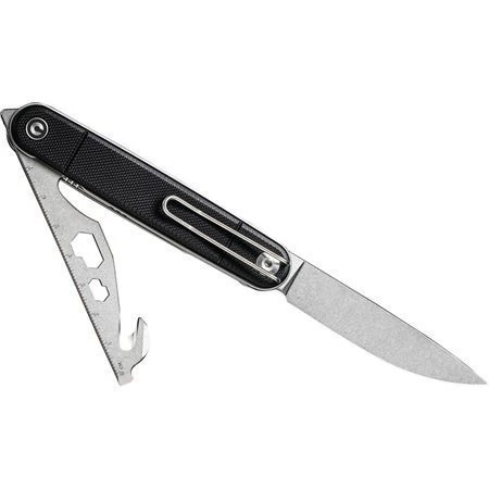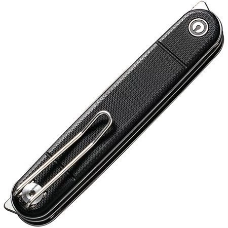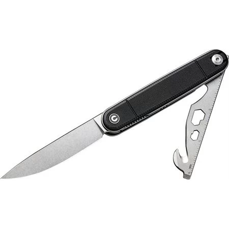Model – CIVC20014F1. Civivi 20014F1 – Crit Knife Black G10. 4.25″ (10.8cm) closed. 3.25″ (8.26cm) stonewash finish Nitro V steel blade. Black G10 handle. Extended tang. Pocket clip. 9Cr18MoV stainless multi-tool with Hex slots (H4,H5,H6,H8), belt cutter, and bottle opener. Black nylon zippered storage case. Boxed. Made in China.