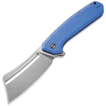 Model – CIVC2006B. Civivi 2006B – Bullmastiff Knife Blue. 5.25″ (13.34cm) closed. 3.88″ (9.86cm) stonewash finish 9Cr18MoV stainless blade. Blue G10 handle. Extended tang. Lanyard hole. Pocket clip. Black nylon zippered storage case. Boxed. Made in China.