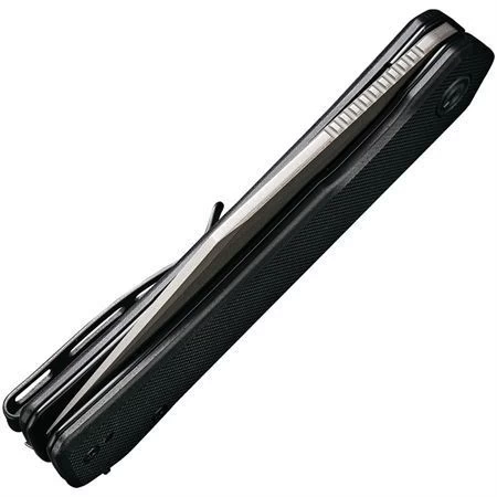 Model – CIVC20077B1. Civivi 20077B1 – Relic Knife Black G10. 4.63″ (11.76cm) closed. 3.5″ (8.89cm) stonewash finish Nitro V steel blade. Black G10 handle. Extended tang. Pocket clip. Black nylon zippered storage case. Boxed. Made in China.