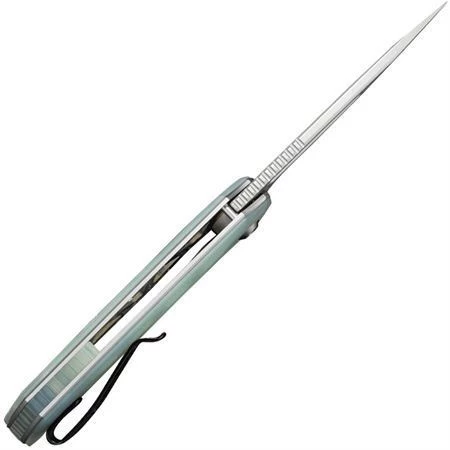 Model – CIVC2010F. Civivi 2010F – Odium Knife Jade. 3.5″ (8.89cm) closed. 2.63″ (6.68cm) stonewash finish D2 tool steel blade. Jade G10 handle. Extended tang. Thumb pull. Pocket clip. Black nylon zippered storage case. Boxed. Made in China.