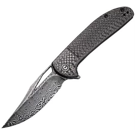 Model – CIVC2013DS1. Civivi 2013DS1 – Ortis Knife CF. 4.25″ (10.8cm) closed. 3.25″ (8.26cm) Damascus steel clip point blade. Carbon fiber handle. Extended tang. Thumb pull. Pocket clip. Boxed. Made in China.
