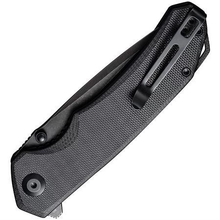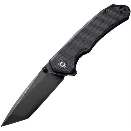 Model – CIVC2023C. Civivi 2023C – Brazen Linerlock Knife. 4.5″ (11.43cm) closed. 3.5″ (8.89cm) black stonewash finish D2 tool steel tanto blade. Black G10 handle. Extended tang. Pocket clip. Lanyard hole. Thumb stud. Black nylon zippered storage case. Boxed. Made in China.