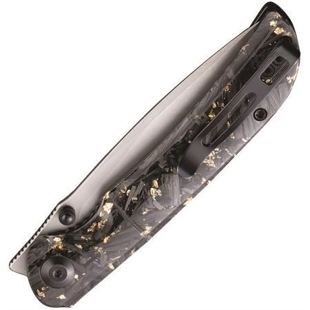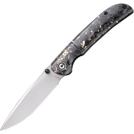 Model – CIVC2106A. Civivi 2106A – Imperium Linerlock Knife Carbon Fiber. 4.5″ (11.43cm) closed. 3.5″ (8.89cm) stonewash finish Nitro V steel blade. Thumb stud. Pocket clip. Shredded carbon fiber handle with golden shred in clear resin. Black nylon zippered storage case. Boxed. Made in China.