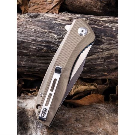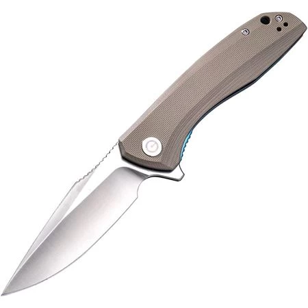 Model – CIVC801B. Civivi 801B – Baklash Knife Tan G10. Baklash Linerlock. 4.63″ closed. 3.5″ satin finish 9Cr18MoV stainless blade. Tan G10 handle. Extended tang. Pocket clip. Lanyard hole. Black nylon zippered storage case. Boxed. Made in China.