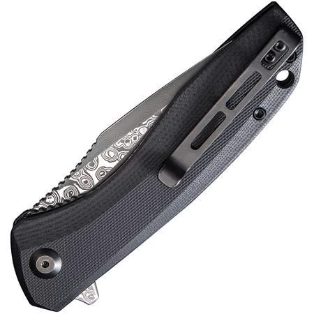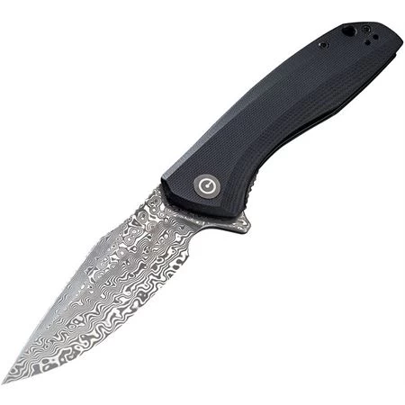 Model – CIVC801DS. Civivi 801DS – Baklash Knife Black G10. 4.63″ closed. 3.5″ Damascus steel blade. Black G10 handle. Extended tang. Lanyard hole. Pocket clip. Boxed. Made in China.
