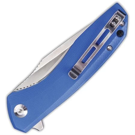 Model – CIVC801F. Civivi 801F – Baklash Linerlock Knife. 4.63″ (11.76cm) closed. 3.5″ (8.89cm) satin finish 9Cr18MoV stainless blade. Blue G10 handle. Extended tang. Lanyard hole. Pocket clip. Black nylon zippered storage case. Boxed. Made in China.