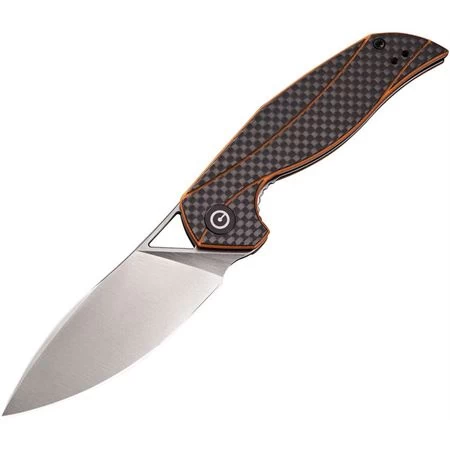 Model – CIVC903A. Civivi 903A – Anthropos Knife. 4.13″ closed. 3.25″ satin finish D2 tool steel blade. Orange G10 handle with carbon fiber onlay. Extended tang. Thumb pull. Pocket clip. Boxed. Made in China.