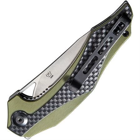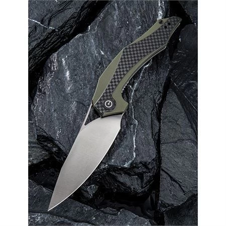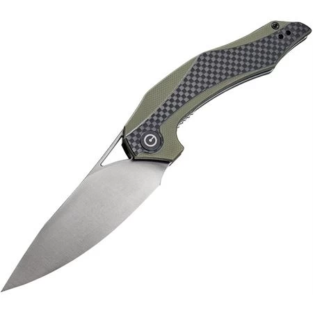 Model – CIVC904B. Civivi 904B – Plethiros Knife Green. 4.5″ closed. 3.5″ satin finish D2 tool steel blade. Green G10 handle with carbon fiber onlay. Thumb pull. Pocket clip. Black nylon zippered storage case. Boxed. Made in China.