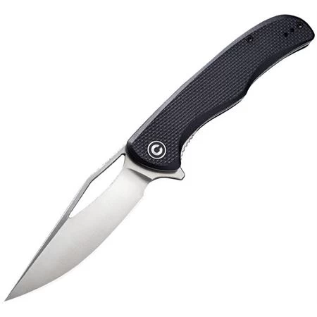 Model – CIVC912C. Civivi 912C – Shredder Knife Gray. 4.75″ (12.07cm) closed. 3.75″ (9.53cm) satin finish D2 tool steel blade. Black and gray textured G10 handle. Extended tang. Thumb pull. Pocket clip. Black nylon zippered storage case. Boxed. Made in China.