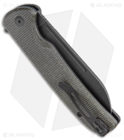- Black stonewashed sheepsfoot blade made from Sandvik 14C28N.