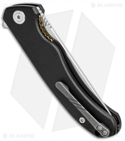 This model of the CIVIVI Courser comes with a black G-10 handle and gold stainless steel liners.