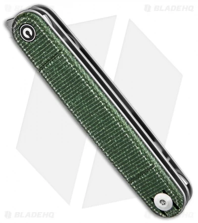 - Green micarta handle with a stainless steel liner lock.
