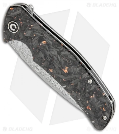 The CIVIVI Incite is a beefy full size folding knife with a wide handle and blade for big EDC cutting tasks. This Incite model sports an impressive copper shred/shred carbon fiber handle and a Damascus steel blade. Get affordable EDC quality with the CIVIVI Incite.