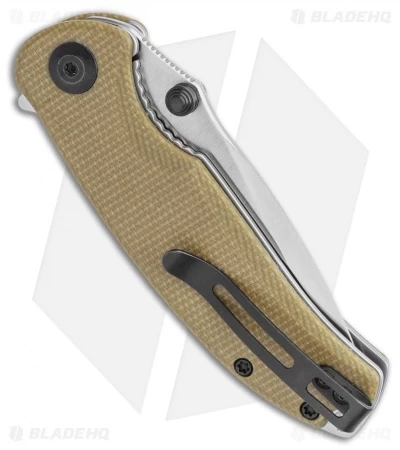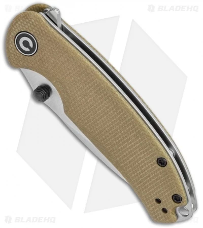 This model of the CIVIVI Pintail has an olive green micarta handle with a satin stonewashed blade.